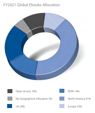 Territorially, North America made up 41% of ebook revenue, the UK 20%, Europe (esp. Germany and Netherlands) 10% and Rest of the World (China, SE Asia, Australia, MENA) 14%.