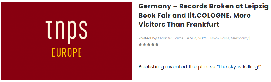 The logic is simple. TNPS was created in 2017 precisely because serious English-language global publishing journalism was then in short supply. PW of course has its US base to serve. Th Bookseller had its UK base to serve. Publishing Perspectives straddled the Atlantic axis but followed the Buchmesse’s interests and sponsors and the global aspirations often gave way to keeping a US audience happy to compete with PW.